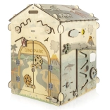 Ta stabilna in lepo ilustrirana hiška (pribl. 61 × 40 cm) je zasnovana kot interaktivni igralni prostor, kjer lahko otroci odkrivajo principe vzroka in posledice, urijo koordinacijo oko–roka ter razvijajo domišljijo. Tema dinozavrov spodbuja naravno radovednost in učenje spremeni v igro.