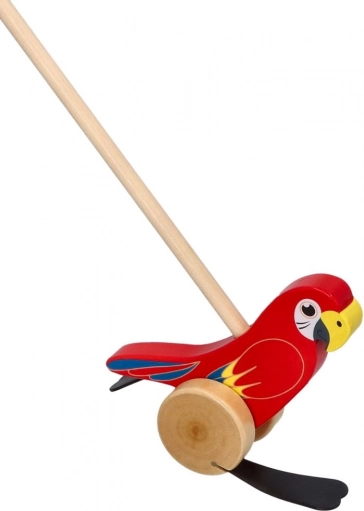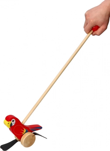 Lesena potisna igrača Papagaj znamke Nature Planet otrokom prinaša veselje do gibanja. Ob potiskanju se papagaj gladko kotali na kolescih, krilca oziroma plavuti se ritmično gibajo, kar otroke spodbuja k hoji ter razvija njihovo motoriko in koordinacijo oko–roka.