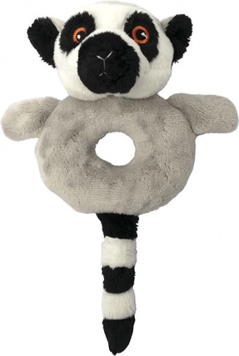 Ta plišasta ropotuljica v obliki lemurja združuje varno zabavo in udobje za najmlajše. Zahvaljujoč odprtini na sredini jo otroci zlahka držijo tudi z drobnimi rokicami, mehak material vabi k crkljanju, nežno ropotanje pa spodbuja sluh in pozornost. Idealna spremljevalka za voziček, posteljico in na pot.