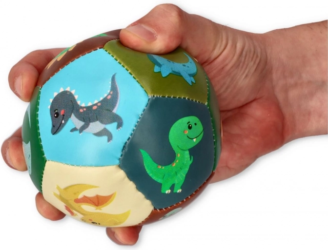 Ta mehka otroška žogica z motivi dinozavrov navduši s pisnimi barvami in prijaznim dizajnom. Zaradi lahke in prožne zasnove jo je enostavno loviti in stiskati, kar pomaga razvijati prijem ter krepi fino in grobo motoriko. Primerna je za prve mete, lovljenje in kotaljenje.