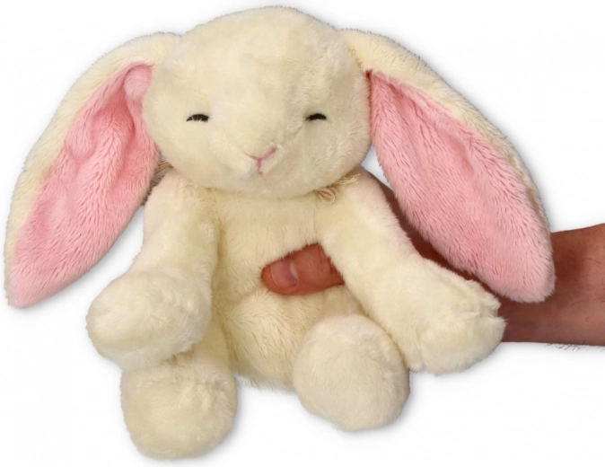 Ta mehkužen zajček bo razveselil vsakega otroka – prijeten je na dotik, lahek za držanje in je zaradi izvezenih oči ter noska varen tudi za najmlajše. Nežen kremni pliš z rožnatim notranjim delom ušesk deluje mehko in pomirjujoče, zato bo postal najljubši prijatelj pri uspavanju.