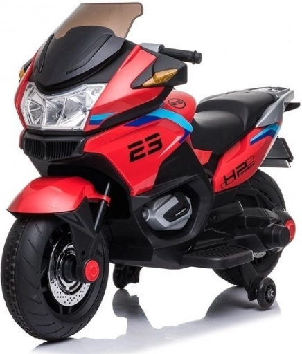 Ta športna različica otroškega akumulatorskega motorja pritegne pozornost ne le z nenavadno barvno kombinacijo, temveč tudi s trdno konstrukcijo in okrasitvijo v slogu pravih motornih koles. Kromirani elementi, stilizirani kot izpušni sistem, motorju dodajo atraktivnost in navdušijo vsakega otroka. Stranska kolesca olajšajo upravljanje otrokom, ki se šele učijo držati ravnotežje. Ta zabava še nikoli ni bila enostavnejša!