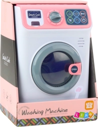 Otroški pralni stroj se zažene s pomočjo gumba ON/OFF na dotikarnem panelu. Izberite enega izmed razpoložljivih programov in pralni stroj bo začel delovati - slišali boste zvok nalivanja vode in boben se bo začel vrteti, kot da gre za pravi pralni stroj. Dodatna atrakcija je odprt sprednji boben in izvlečen predal za prašek za še bolj realistično igro.