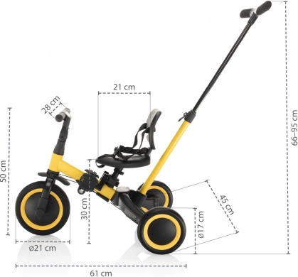 Ta pametno zasnovano prevozno sredstvo združuje tri faze v eni: tricikel (z/ brez vodilne palice), poganjalec in kolo. Zaradi preprostega in hitrega zlaganja je odličen spremljevalec za družinske izlete, počitnice in obiske.