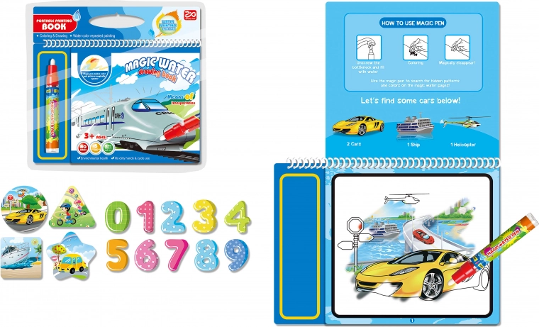 Doživite veselje ustvarjalnosti z vodnim slikanjem prevoznih sredstev. Odkrijte svet poln barv brez nereda zahvaljujoč edinstvenim pobarvankam, ki se aktivirajo z vodo.