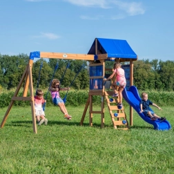 Ta izjemen igralni set ameriškega podjetja Backyard Discovery, lastnika znane znamke STEP2, navdušuje s kakovostjo in natančno izdelavo. Je stabilen, varen in trpežen, izdelan iz cedre, ki zagotavlja naravno odpornost proti gnitju, žuželkam in vremenskim vplivom. Kompleti ohranijo svoje barve in lastnosti skozi številne sezone. Lesene hišice in igrišča Backyard Discovery so čudovita in odlično opremljena.