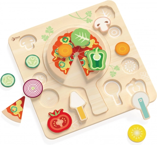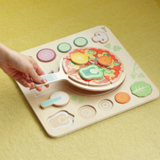 Dobrodošli v svetu okusov in ustvarjalne zabave! Lesena sestavljanka »Pizza Puzzle Board« je popolna igrača za male kuharje. Z barvnimi dodatki si lahko otroci ustvarjajo svoje lastne pizza kombinacije, razvijajo domišljijo, ročne spretnosti in vidno koordinacijo.