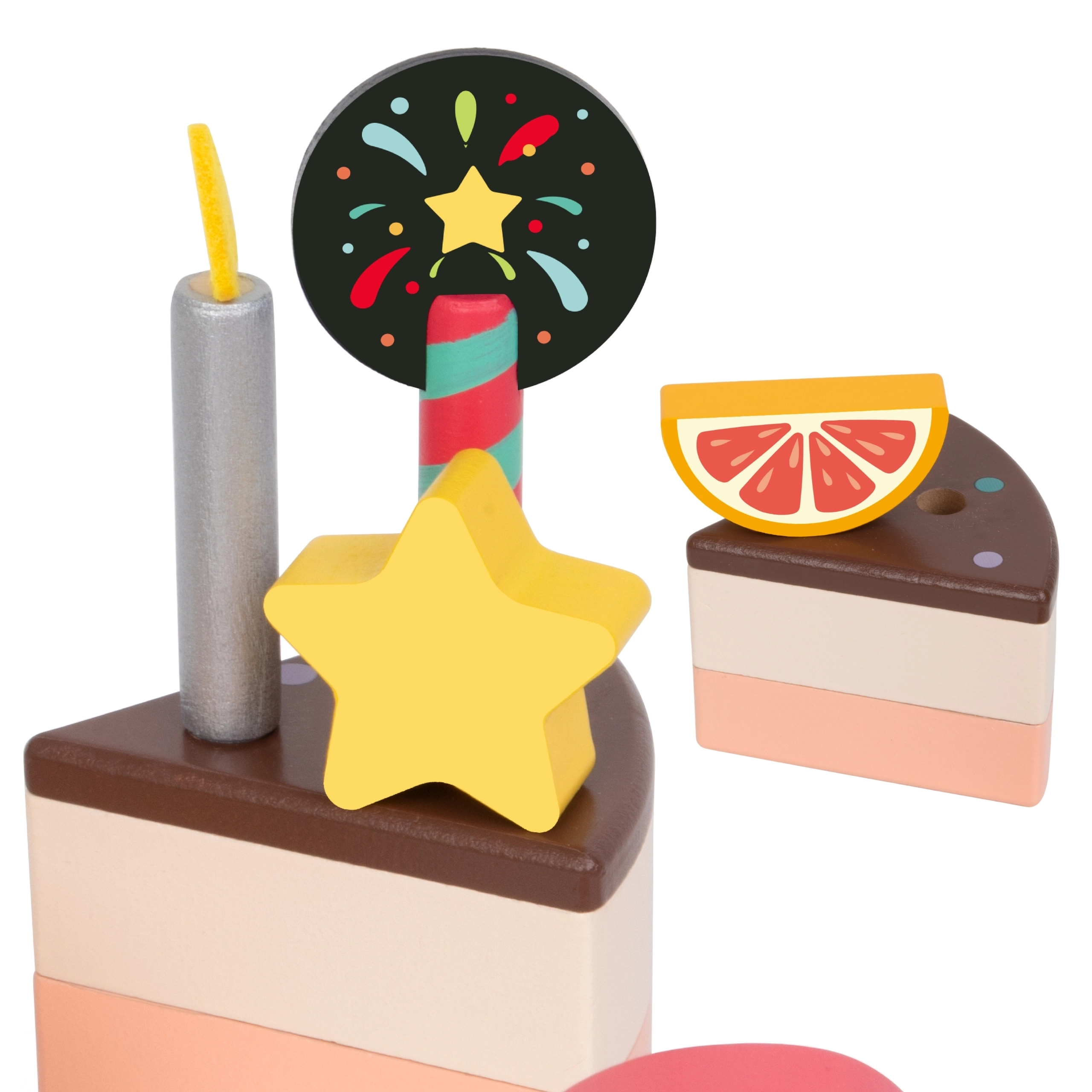Praznujte vsak dan s čudovito leseno rojstnodnevno torto! Otrok lahko postavi svečke, si nekaj zaželi in »upihne« plamen, s čimer ustvari posebno rojstnodnevno praznovanje.