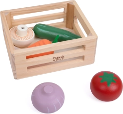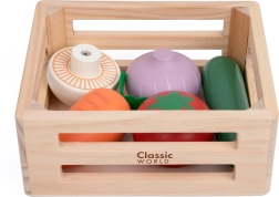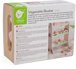 Lesena košara z zelenjavo znamke Classic World otrokom ponuja neskončne možnosti ustvarjalne igre v kuhinji ali trgovini. Leseni elementi, ki predstavljajo različne vrste zelenjave, spodbujajo domišljijo in družbene veščine otrok.