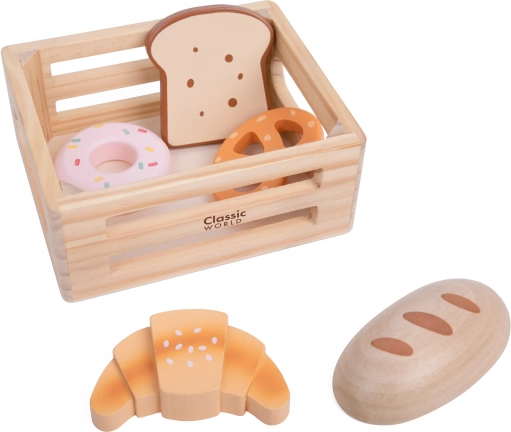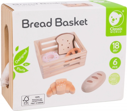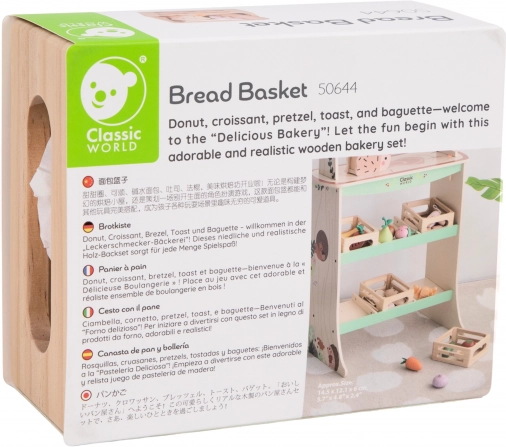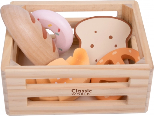 Odkrijte lesen pekovski koš znamke Classic World, ki je idealen za male ljubitelje ustvarjalne igre v kuhinji, trgovini ali pekarni. Visokokakovostni leseni elementi, ki posnemajo različne vrste peciva, razvijajo domišljijo in socialne veščine otrok.