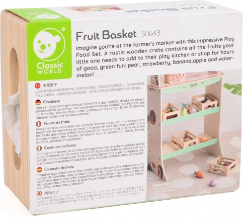 Predstavljamo vam leseno košaro s sadjem blagovne znamke Classic World, ki bo prinesla zabavo v vsako otroško igro. Ta odličen set je izdelan iz kakovostnega lesa in je idealen za igro trgovine ali kuhinje.