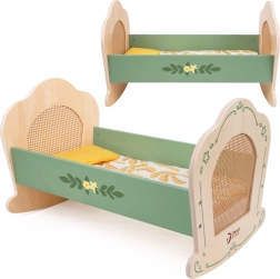 Ta očarljiva zibelka v zelenih odtenkih združuje brezčasni šarm vintage sloga z naravno lepoto ratanove pletenine. Klasični detajli in umirjena barvna paleta naredijo zibelko za popoln dodatek k vsaki otroški igri, naj gre za nego punčk ali plišastih medvedkov. Nežna dekoracija daje zibelki edinstven značaj, mehka posteljnina pa punčki zagotavlja udoben spanec.
