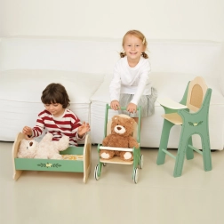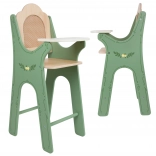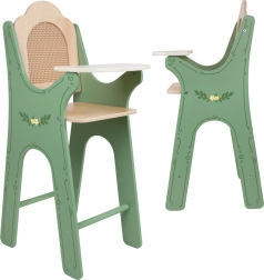 Lesen stolček za punčke v vintage slogu z ratanastim naslonom! Eleganten stolček doda pristnost pri igri skrbi za punčke. V zelenih tonih in z nežnimi cvetličnimi detajli je ta izdelek popoln dodatek vsaki otroški igri.