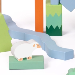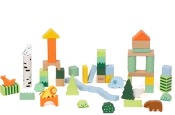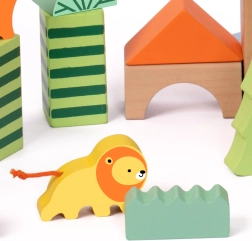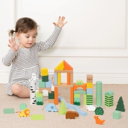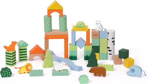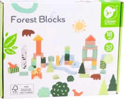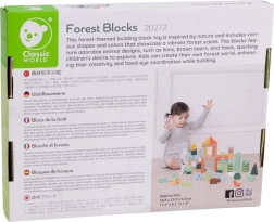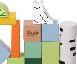 Lesene kocke z gozdnim motivom blagovne znamke Classic World predstavljajo kreativni komplet, ki otroke popelje v svet gozdnih dogodivščin. Različne oblike in barve omogočajo prosto gradnjo ter razvijajo otrokovo domišljijo in ustvarjalnost.