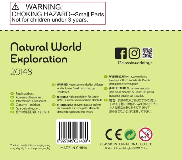 Igrača je izdelana iz lakiranega lesa in z uporabo netoksičnih barv, kar zagotavlja varnost za otroke in zmanjšuje ekološki odtis.