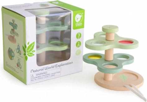 Leseni mikroskop in lupa 2v1 »Raziskovanje narave« znamke Classic World, ki spodbuja otrokov interes za znanost in odkrivanje. Ta igralni set vsebuje barvne leče, prizme, povečevalno steklo in konkavna ogledalca, kar spodbuja ustvarjalnost in izboljšuje motoriko.