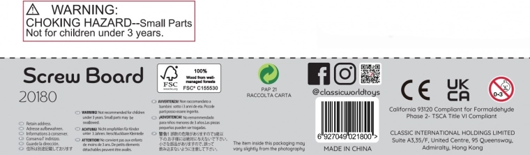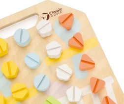 Lesena plošča z barvnimi vijaki znamke Classic World je igrača, namenjena razvoju otrok skozi igro. Otroci lahko z vijaki ustvarjajo različne oblike, kar prispeva k razvoju njihove koordinacije in motoričnih spretnosti.