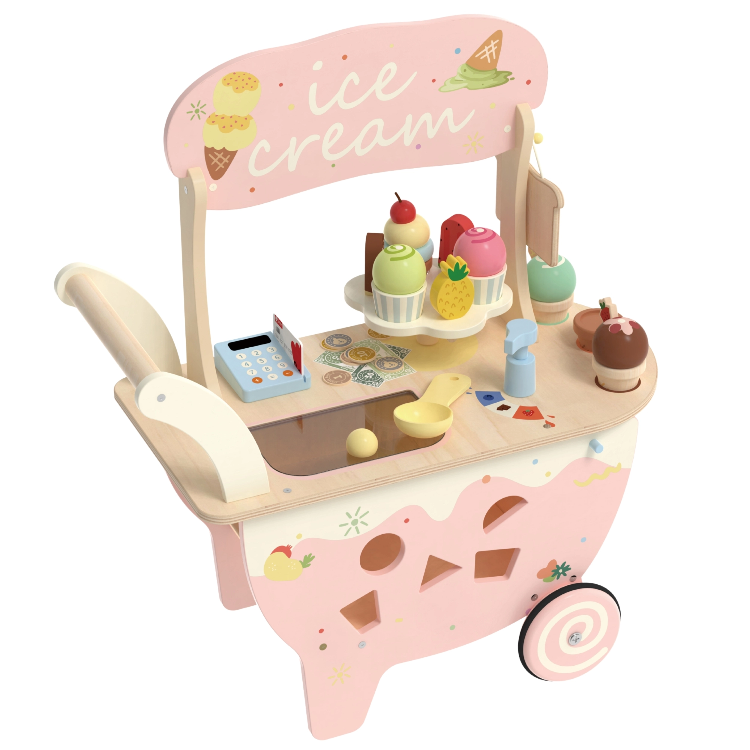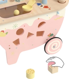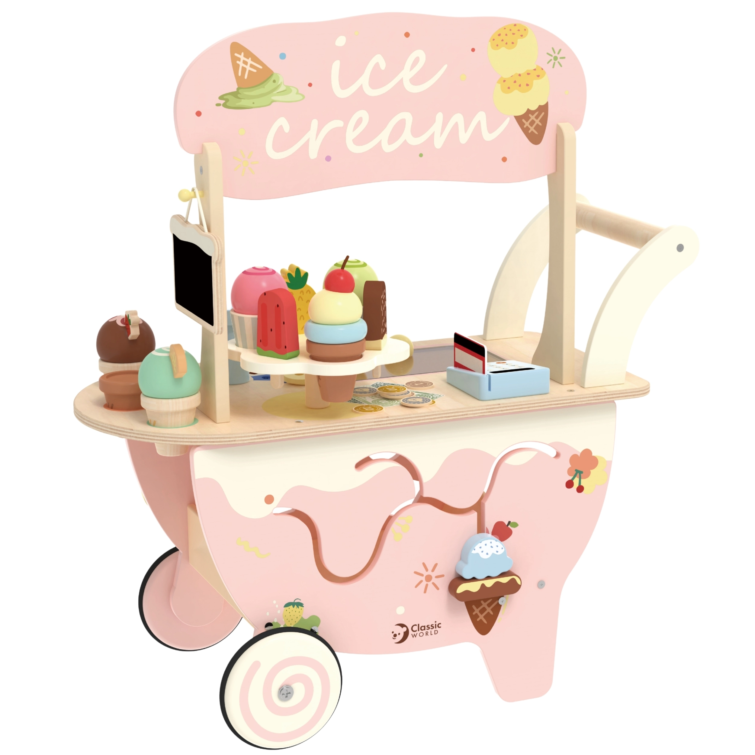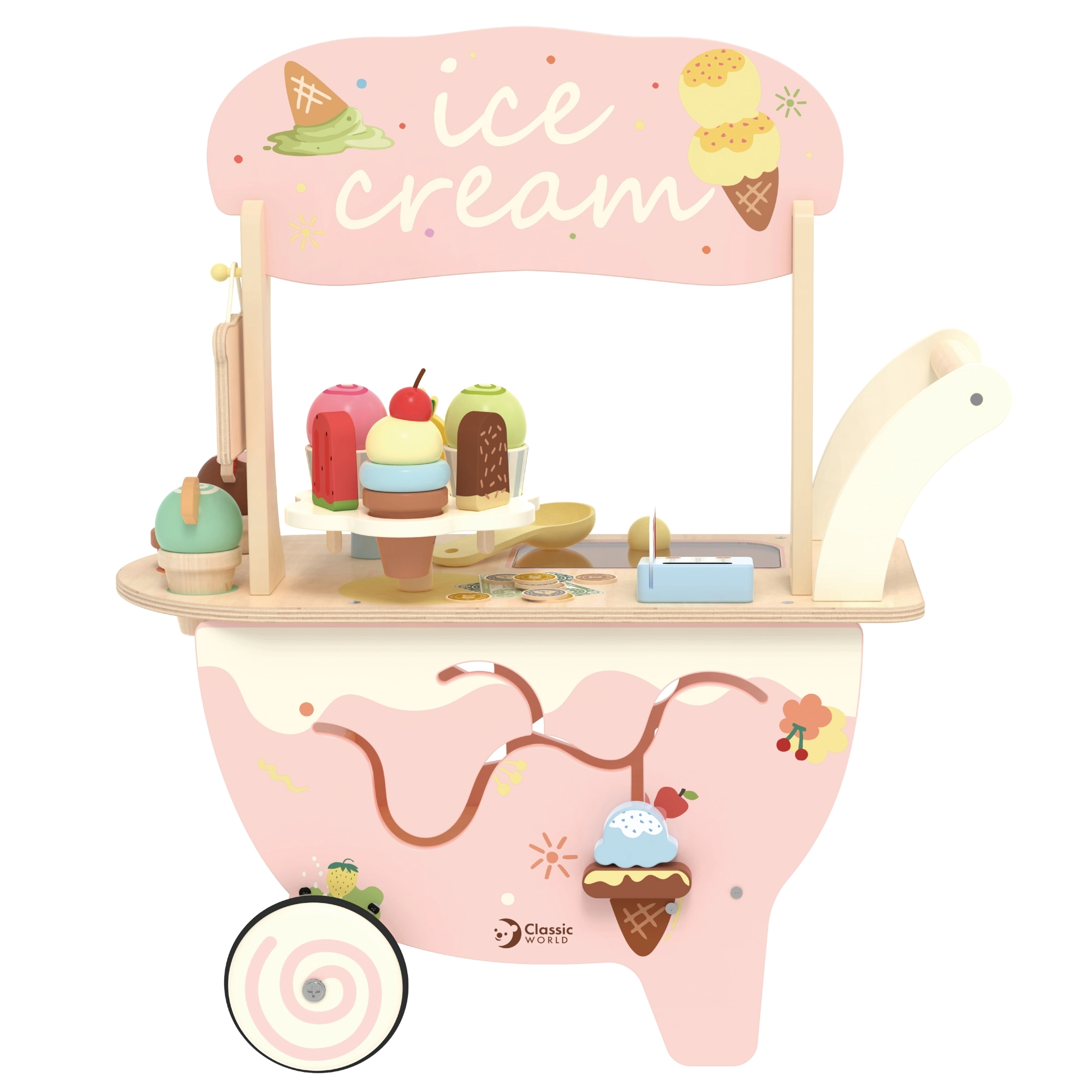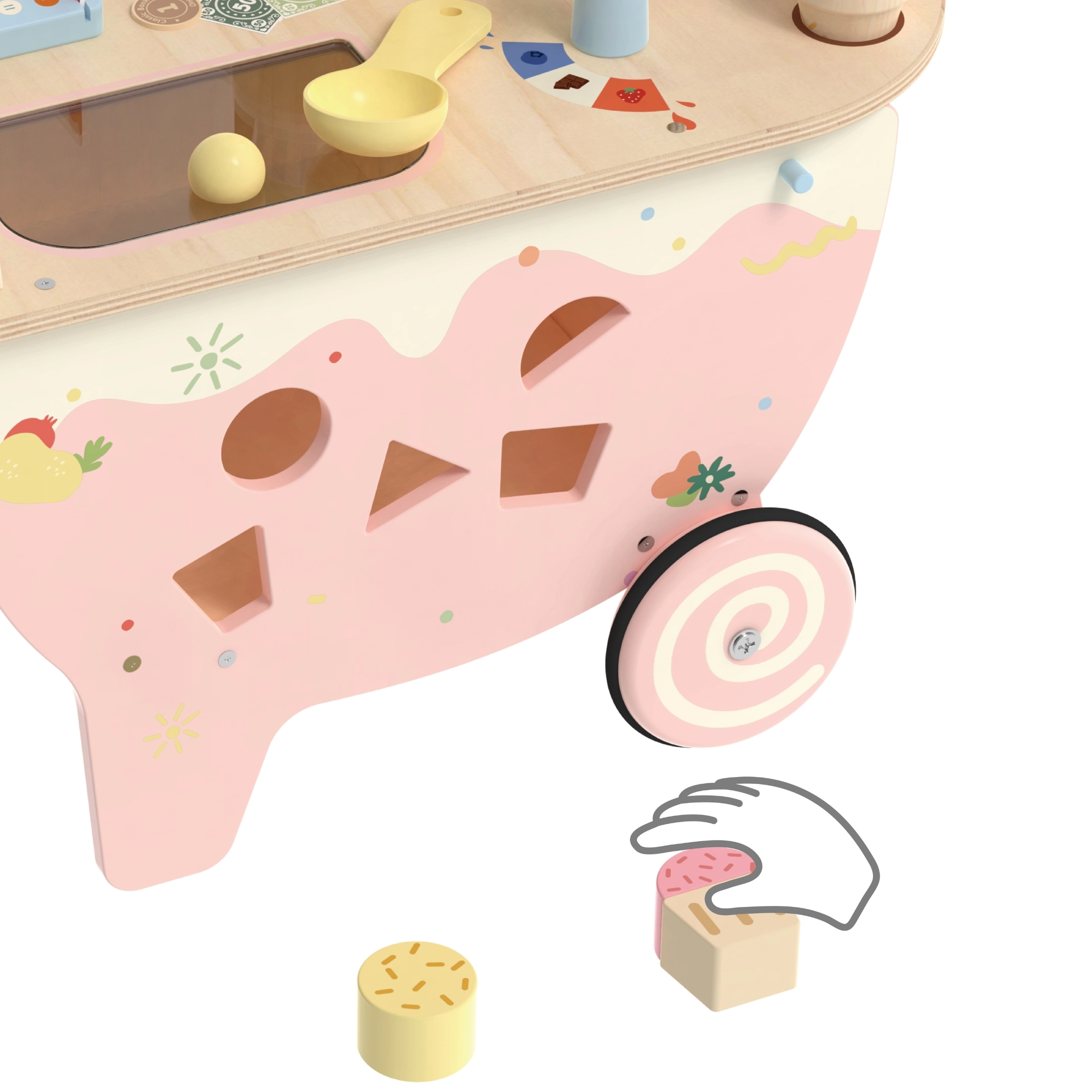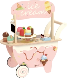 Predstavljamo vam leseno sladoledarno 3v1 Classic World, ki je idealna za otroke od 3. leta dalje. Ta večnamenska igrača ne služi le kot sladoledarna, ampak tudi kot razvrščevalnik, labirint in tabla za risanje. Izdelana je iz trpežnih in varnih materialov, v pastelnih barvah in z okrasnimi potiski, ki bodo navdušili vsakega malega prodajalca. Zahvaljujoč bogati množici ledenih dodatkov, vključno z različnimi okusi, dodatki in korneti, se lahko otroci popolnoma potopijo v igro trgovine ali sladoledarne.