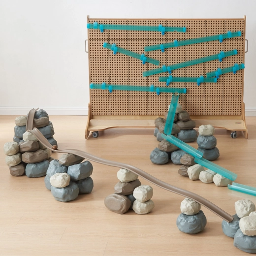 Elastična proga z gumijastimi gradniki je lahka in varna gradbena igrača iz prožnega plastike. Zasnovana za ustvarjalno igro omogoča gradnjo opor, ovir ter raznolikih struktur za dirkalne proge in eksperimente z gravitacijo.