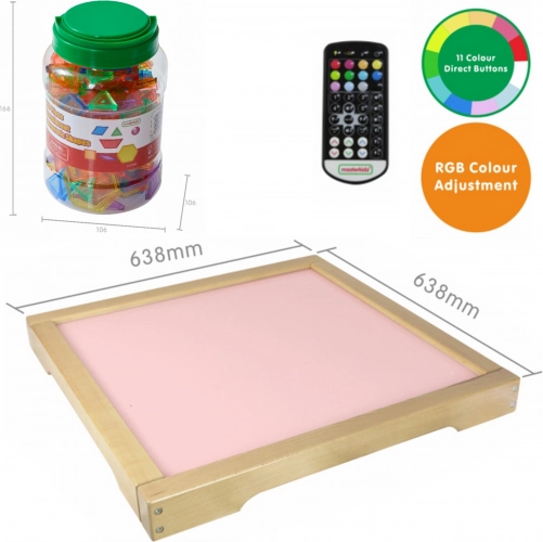 Svetlobna LED plošča Masterkidz prinaša barvni svet v otroško igro. Z možnostjo spreminjanja barv z daljinskim upravljalnikom in z 11 prednastavljenimi barvami lahko otroci raziskujejo kombinacije in ustvarjajo svetlobne učinke z Montessori kockami.