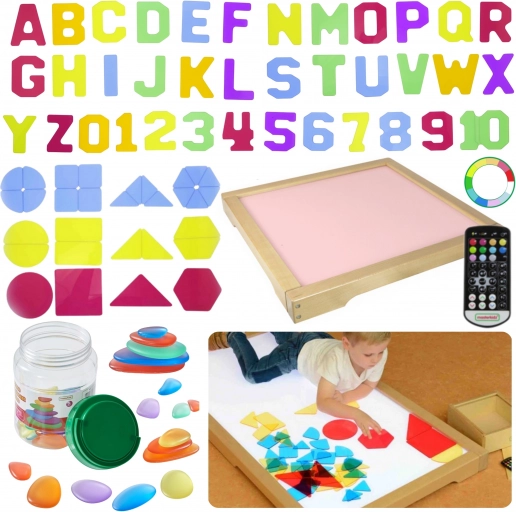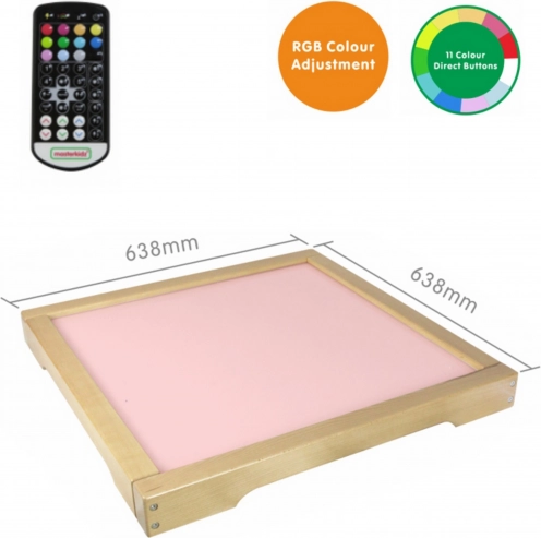 LED svetlobna plošča MASTERKIDZ je trdna lesena škatla z LED osvetlitvijo od zadaj, ki jo je mogoče prilagoditi z daljinskim upravljalnikom. Uporabnik lahko nastavi ploščo na eno od 11 prednastavljenih barv ali ročno spreminja svetlobo s kombiniranjem osnovnih barv: rdeče, zelene in modre.