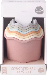 Uživajte v zabavi z barvitim zložljivim stolpom iz lončkov, ki bo zabaval vsakega otroka. Pakiranje vsebuje 8 kosov lončkov z motivi valov, zgrajeni stolp pa doseže višino 40,8 cm.
