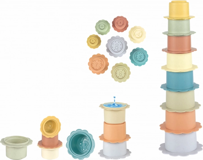 Odkrijte zabavo z stolpom za zlaganje lončkov Cvet, ki otroke pritegne in zabava. Ta ustvarjalna igrača ponuja: