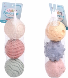Pripravite se na veliko zabave z našim kompletom teksturiranih žogic. Ta kolekcija vsebuje tri žogice, vsaka z edinstveno teksturo, ki prinašajo nove možnosti igre in razvoj tipnih spretnosti: