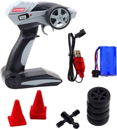 Avto je opremljen z LED lučmi (sprednje, zadnje, neonske), ki mu dajejo izjemen videz, zlasti med večerno vožnjo. Napreden 2,4 GHz upravljalnik ponuja natančen nadzor in domet do 25 metrov. Funkcija turbo omogoča takojšnje povečanje hitrosti, dodatne pnevmatike in stožci pa omogočajo ustvarjanje lastne proge in izpopolnjevanje voznih tehnik.