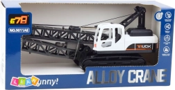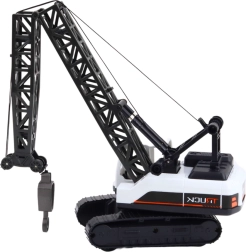 Žerjav ima gibljivo roko s kavljem, ki ga je mogoče dvigovati in spuščati. Roka žerjava se premika na sklepih in vrtljiva osnova omogoča popolno vrtenje za 360°. Celotna konstrukcija je nameščena na trdnem tračnem podvozju, kar povečuje realizem in stabilnost. Igrača je oblikovana v belo-črni barvni kombinaciji s podrobnostmi, ki posnemajo profesionalno gradbeno opremo.