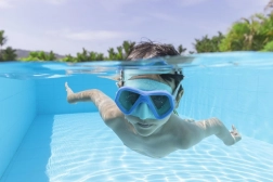Nastavljiv trak zagotavlja udobno nošenje in varno pritrditev okoli glave za brezskrbno plavanje.