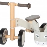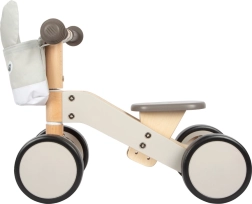 Poganjalec je opremljen z nastavljivim sedežem (22–25 cm), ki se zlahka prilagodi rasti vašega otroka. Praktična snemljiva torbica na krmilu v dizajnu oslička nudi dovolj prostora za stekleničko ali plišastega prijatelja. Zadnji kolesi sta dovolj blizu skupaj, kar ustvarja prostor za udobno odrivanje z nogami.