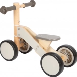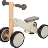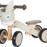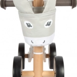 Leseni poganjalec z motivom oslička je idealen za otroke, ki se učijo gibati varno in samozavestno. Zelo stabilna konstrukcija skupaj z mehkimi, gumiranimi kolesi ne le ščiti talne obloge, temveč tudi omogoča tihe vožnje. Ergonomski gumijasti ročaji otrokom zagotavljajo trden oprijem in enostavno upravljanje.