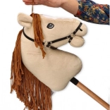 Odkrijte čar igre s konjičkom na palici Gracja v elegantnem beženo-medenem odtenku. Zahvaljujoč mehkem plišu je prijeten na dotik, ima realistične detajle oči in nosnic, odstranljivo uzdo ter bogato vrvno grivo. Masiven lesen ročaj zagotavlja višjo vzdržljivost in dolgo življenjsko dobo. Idealno za kreativno in gibalno igro otrok od 3 let dalje.