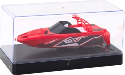 RC motorni čoln v rdeči barvi navduši z dinamično obliko in živahnimi barvami. Zaradi aerodinamične zasnove trupa se po vodni gladini giblje stabilno in hitro, s čimer zmanjšuje upor vode in povečuje zmogljivost.