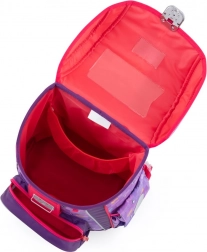 Nahrbtnik je sestavljen iz enega prostornega predala, ki zlahka sprejme vse šolske potrebščine. Dno nahrbtnika je iz trpežnega materiala za zaščito vsebine. Zapiranje poteka z varnostno kovinsko zaponko z odsevnikom. Sprednji žepek je namenjen malici, ne manjkajo pa niti odsevni elementi, ki zagotavljajo vidnost.
