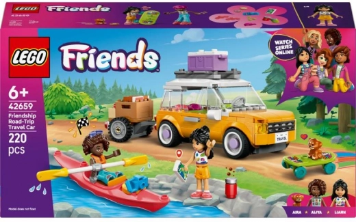 Podajte se na avanturo s setom LEGO Friends avtomobilski izlet prijateljic. Otroci od 6 let bodo zgradili avto s prikolico, se igrali z minipunčkama Liann in Aliya ter prikupnim kužkom. Ne manjkajo bogati potovalni dodatki, vključno s kajakom, čelado, deskarsko opremo in prenosnim hladilnikom polnim dobrot. Odličen način za razvijanje ustvarjalnosti, socialnih veščin in ljubezni do zgodb iz mesta Heartlake.