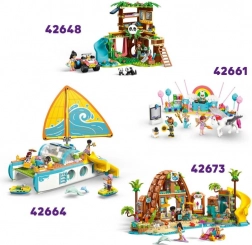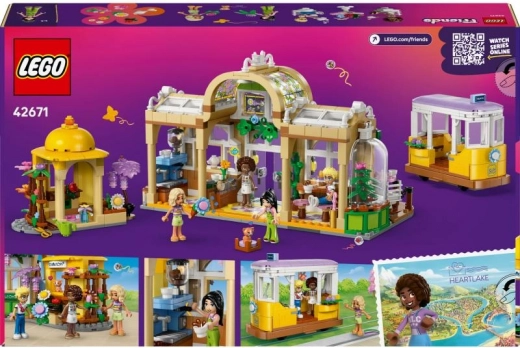 Ta očarljiv set iz mesta Heartlake vabi k raziskovanju cvetja in prijateljstva. Otroci lahko postrežejo stranke v cvetličarni, pripravljajo dobrote v kavarni s kuhinjo in širijo dobro voljo s stilskim tramvajem. Štiri figure (Aliya, Esme, Olly in Nova) ter figurica mačke širijo možnosti igre ter spodbujajo socialne veščine in empatijo.