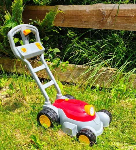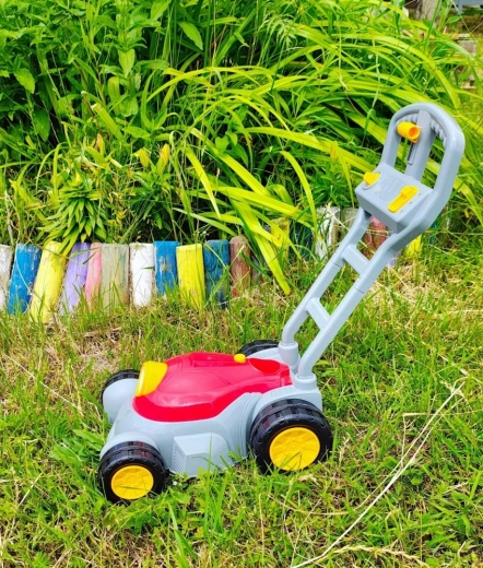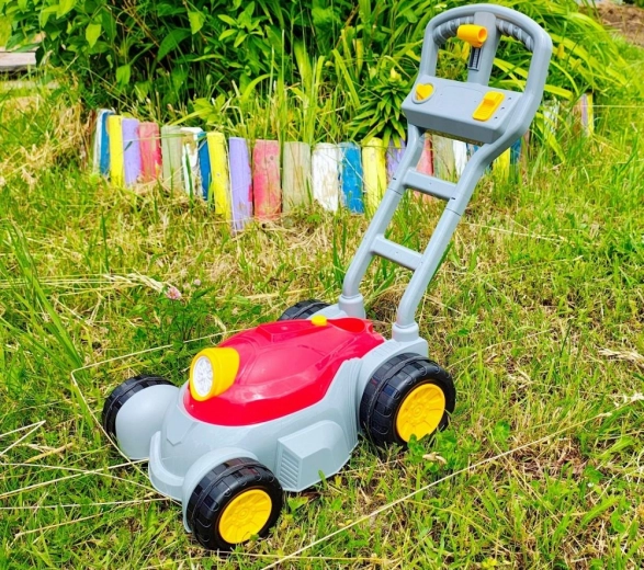 Lahka konstrukcija, robusten ročaj in velika kolesa zagotavljajo enostavno potiskanje po travi in po trdnih površinah. Igrača spodbuja gibanje, domišljijo in igro vlog, zato je idealna za zabavo na prostem na vrtu, terasi ali v parku.