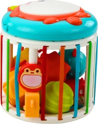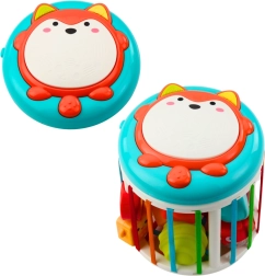 Interaktivna kocka je opremljena s funkcijami, kot so razvrščevalnik oblik, potisni elementi, palice za potiskanje kock in glasbeni panel z svetlobnimi in zvočnimi efekti. Na zgornjem delu je lisica z bobnom, ki ob pritisku aktivira zvok. Kocka predvaja različne zvoke in melodije, ki bogatijo otrokovo slušno zaznavo in ga motivirajo k aktivnosti.