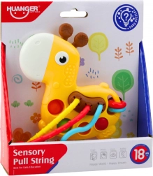 Ta žirafa je opremljena z barvitimi vrvicami različnih tekstur, ki jih lahko otroci vlečejo skozi odprtine ter tako vadijo natančnost in spretnost prstov. Vsebuje tudi vrtljive in klikalne elemente, kar igračo naredi še bolj zabavno in privlačno.