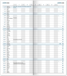 Praktičen tanek dnevnik v modri barvi s mesečnim razporedom, ki se prilega povsod. Vsebuje češki koledar z imeni, prazniki in spominskimi dnevi.