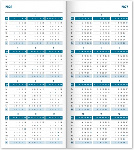 Praktičen tanek dnevnik v modri barvi z mesečno razporeditvijo, ki gre resnično povsod zraven. Vsebuje slovaški koledarij, praznike in spominske dni.