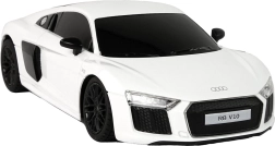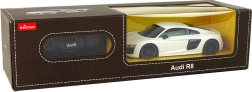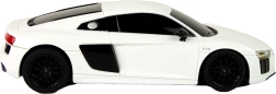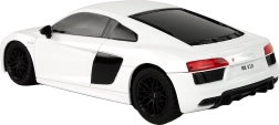 Model avtomobila Audi R8 prihaja s stilskim belim lakom, ki daje avtomobilu poseben in ekskluziven videz. Zatemnjena stekla dodajo k skrivnostnosti in avtentičnosti avtomobila.