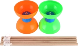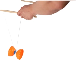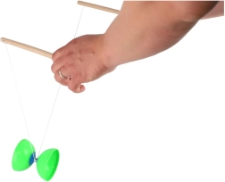 Veliki diabolo z robustnimi plastičnimi skodelicami in lesenimi palicami prinaša veliko zabave in vaja motorike. Zaradi širokih skodelic in stabilne osi je diabolo zelo stabilen, dobro drži hitrost in odpušča napake – idealno za učenje in razvoj trikov.