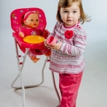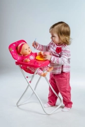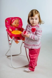 Ta visoki stolček s mizico je idealen za deklice, ki želijo nahraniti svojo punčko. S svojo eleganco in funkcionalnostjo prinaša ure zabave.