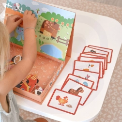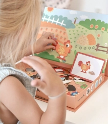 Z magnetno sestavljanko znamke Tooky Toy bodo otroci doživeli veselje igrivega učenja na kmetiji. Izbrani vzorci in like, kot so hlevske živali, kmet in jablana, prikazujejo čar kmečkega življenja. Vsak projekt je sestavljen iz štirih do petih magnetnih sestavljank, kar otrokom omogoča sestavljanje lastnih kmečkih prizorov.