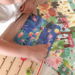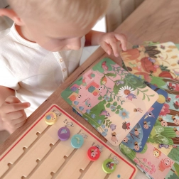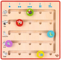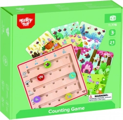Igra je namenjena otrokom od 3 let naprej in vsebuje leseno tablico za označevanje števil ter 20 kart z gozdnimi motivi za štetje živalic, pri čemer so odgovori na zadnji strani. Otroci lahko igrajo samostojno, vadijo štetje in besedišče v slovenščini in angleščini.