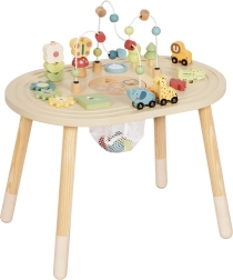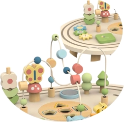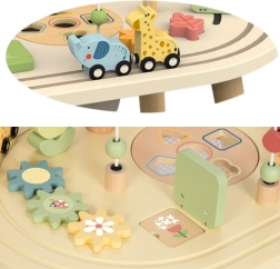 Ta čudovita lesena mizica za najmlajše je idealna za raziskovanje sveta, polnega barv, oblik in zvokov, pri čemer podpira razvoj pomembnih veščin. Popolna izbira za ure zabave, v katerih bo vaš mali raziskovalec doživel vsak dotik kot uspeh.