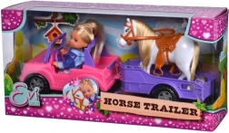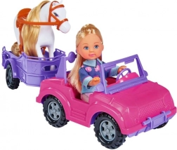 Ta set prinaša otrokom vse za njihova jahalna doživetja. Punčka Evi Love vozi stajliš rožnat kabriolet, za katerim vleče vijolično prikolico za udoben prevoz konjička. Zahvaljujoč vrtečim se kolesom in odstranljivi prikolici je igra gladka in zabavna doma ali na poti.